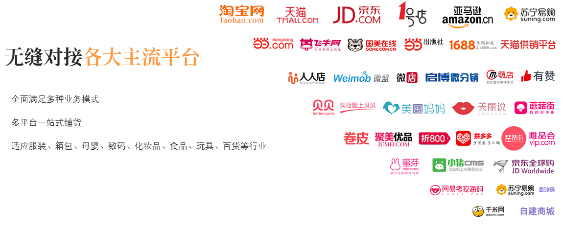 全渠道訂單自動化處理 全渠道訂單統(tǒng)一收訂 訂單智能監(jiān)控,防止漏單、錯單 電子面單全面對接,每小時3000訂單輕松打 多平臺、多店鋪庫存統(tǒng)一管理 多平臺庫存自動同步,線上線下庫存同步 庫存數(shù)據(jù)自動更新,避免超賣 智能補貨,及時補貨備貨 各類賬目清晰明了 與供應(yīng)商、分銷商往來對賬清晰準確 物流、快遞費用自動結(jié)算 各平臺運營數(shù)據(jù)輕松掌握,獨立核算
